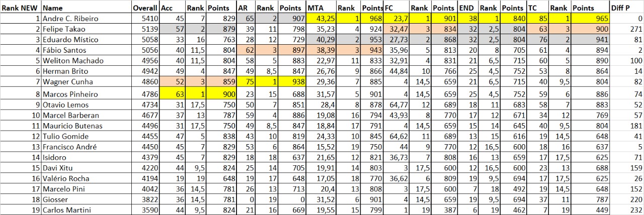Após um campeonato disputadíssimo entre Brasil e Estados Unidos decidido na última modalidade com uma diferença de 8 pontos ao longo de 13.000 disputados o Brasil se consagrou campeão mundial. Segue abaixo a tabela da classificação e algumas fotos do evento.